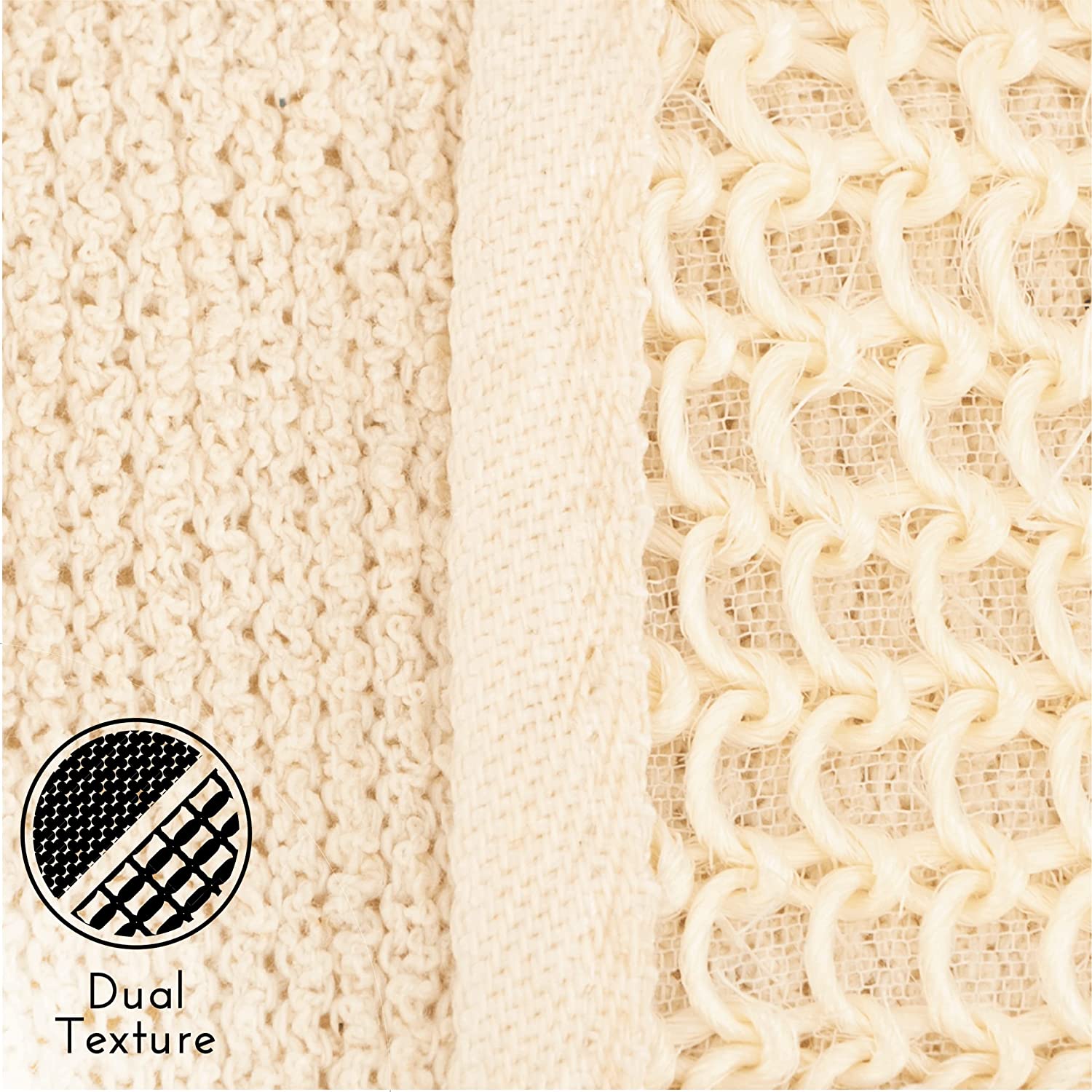 Use the soft terry side to cleanse and the scrubbing sisal to exfoliate