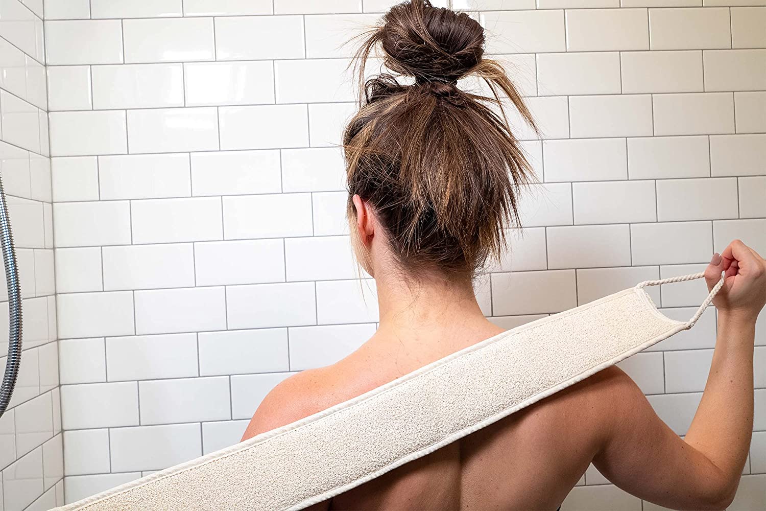 Renew skin with our dual textured back scrubber