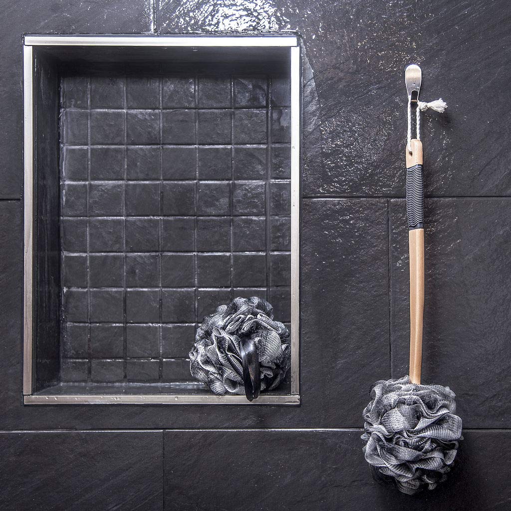 EXTENDED REACH & BETTER GRIP – Our Long handled back loofah reaches 17” plus creating ease for your back and feet. More girth on the handle creates better grasp. The textured rubber grip provides a comfortable and secure, no-slip grip even when wet.