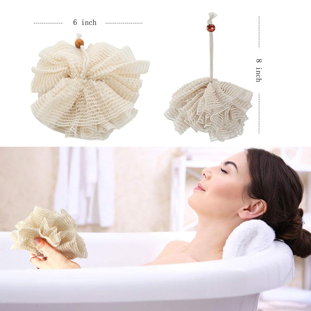 HIGH-QUALITY MATERIAL: The body wash sponge is made of 100% natural fiber sisal. As one of the most used fibers in the world, sisal is tough and wear-resistant enough to create the rich quality foam quickly and clean your skin.