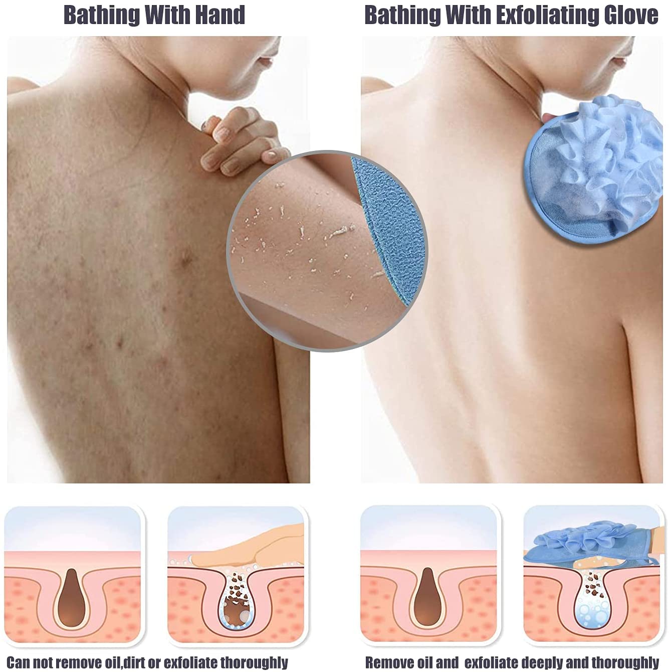 [Hanging Hole Design & Thoughtfully Gift Packaged] This body exfoliating glove with a hanging hole design, allows you hang it on hooks which will help prevent dust, is easy to store, and can be easily dried after washing. It makes a perfect and delightful gift for any occasion for family and friends. Exfoliating brush Give them beauty, make them more confident.