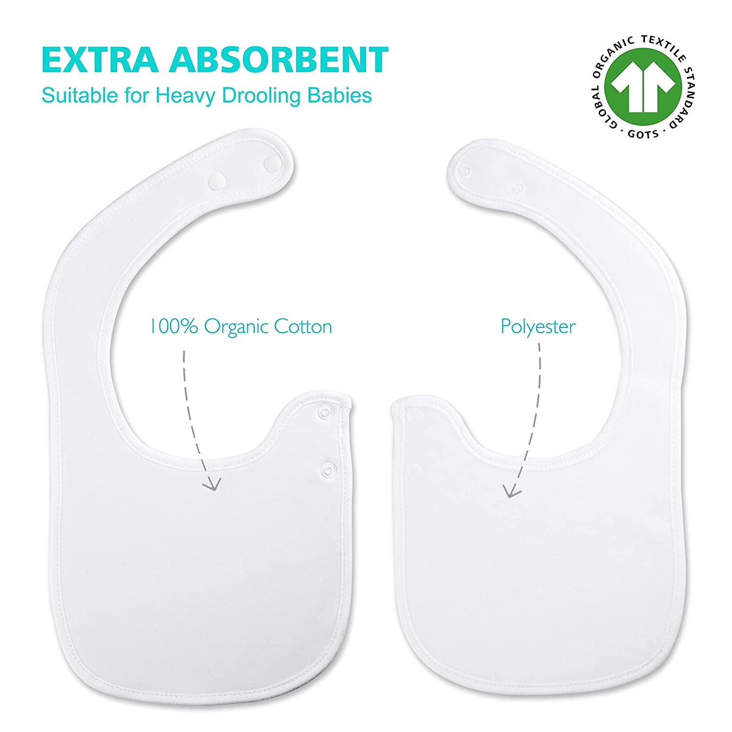 【SUPER SOFT ABSORBENT DROOL BIBS 100% ORGANIC COTTON】The baby drool bibs is made of 100% soft organic cotton and 100% super absorbent polyester fleece on the back that keeps your baby completely dry even with the drooliest of babies.Soft enough to help keep baby’s tender skin dry and rash-free.Dual-layer design bibs, the front layer is made of 100% organic cotton with high absorption capacity and the back is a polyester fleece that prevents the drools from soaking the baby’s clothing