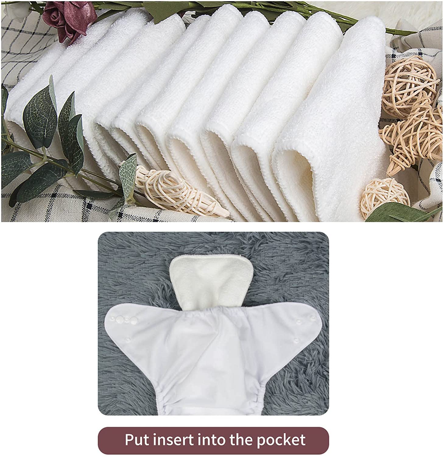 HIGH QUALITY, ADJUSTABLE, REUSABLE & WATERPROOF -Outer layer: polyester with waterproof and breathable TPU .It's convenient for mammy to carry baby while taking a walk or doing chores. Inner layer: suede cloth inside, it does not hold moisture itself ,the moisture get drawn away to the insert to keep your baby dry . Insert: each diaper would come with two 3-layer microfiber inserts. Insert dimension approx 13.7” x 5.5”