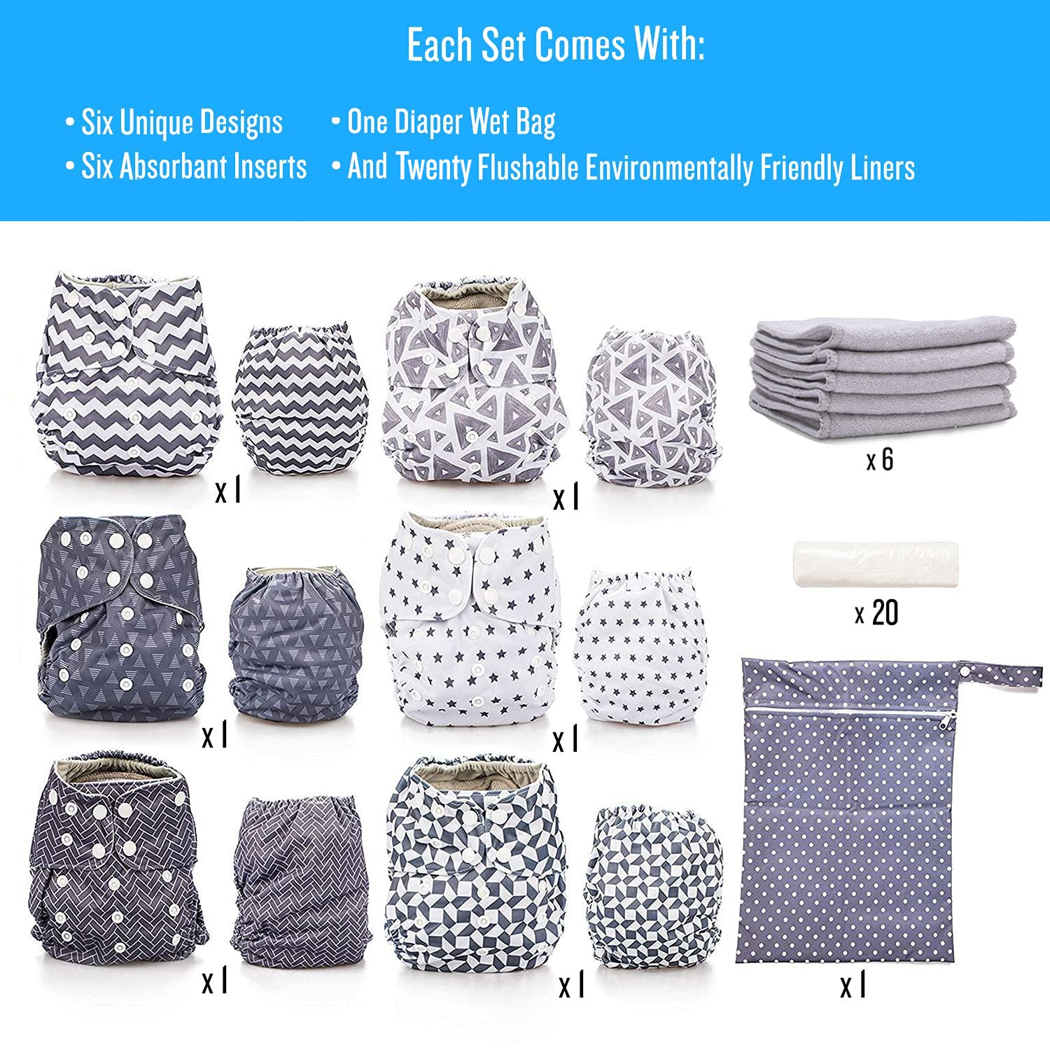 WASHABLE & REUSABLE - Features light grey interior to help hide staining. Easy washing and drying. These cloth diapers are reusable so it’s economical and practical. You’ll save more money compared to buying disposable diapers.