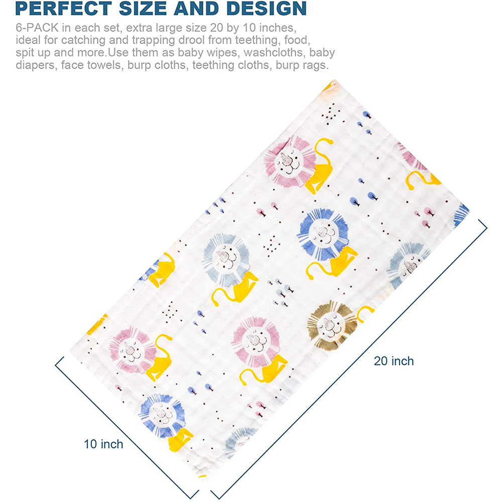 100% ORGANIC COTTON---- Baby burp cloths with 6 layers 100% organic muslin cotton.Super absorbent and premium soft. Do not pose any risk of itching, irritation or annoyance to the sensitive skin of your baby.
